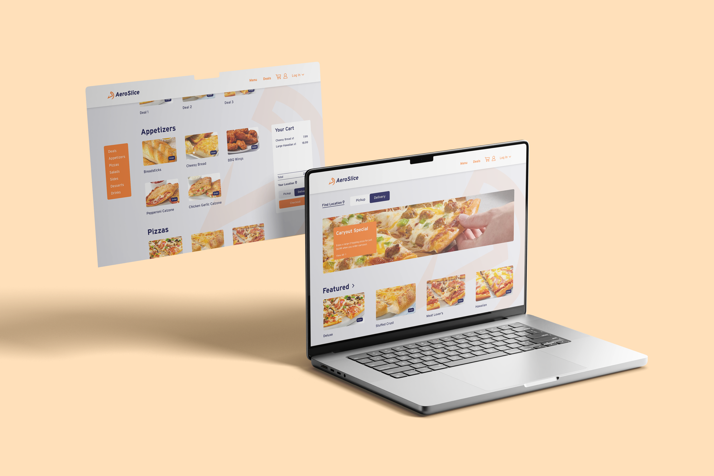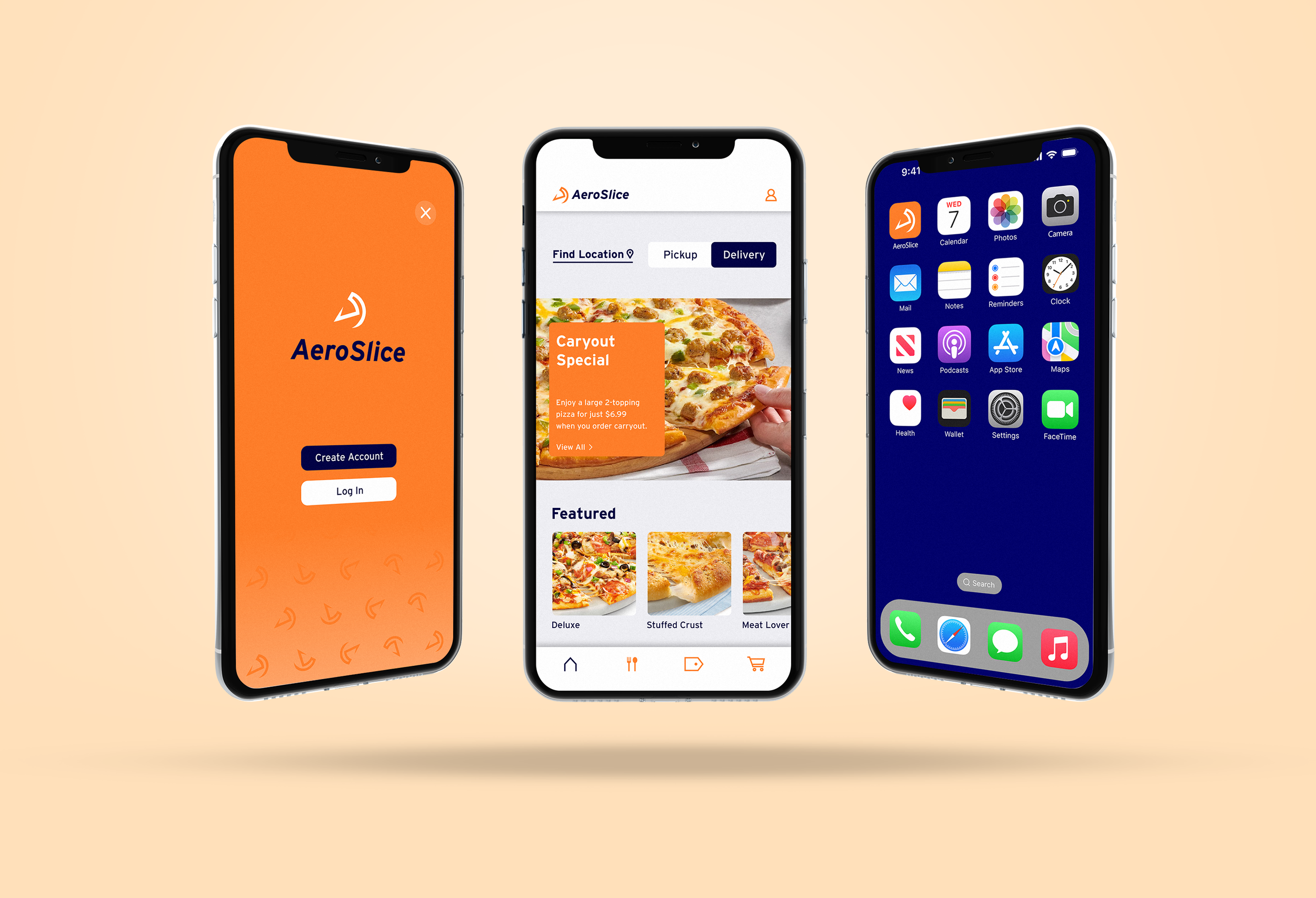 AeroSlice is a pizza brand that uses drones to deliver. My goal was to design a brand identity and system that communicates speed, innovation, and reliability. I focused on creating an identity that feels modern and energetic while still emphasizing quality and freshness. I kept a cohesive visual language that supports a smooth experience and reflects the brand’s forward-thinking approach.